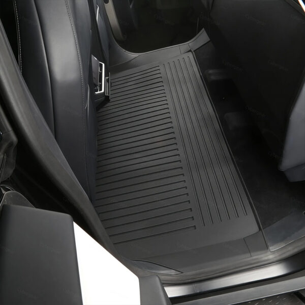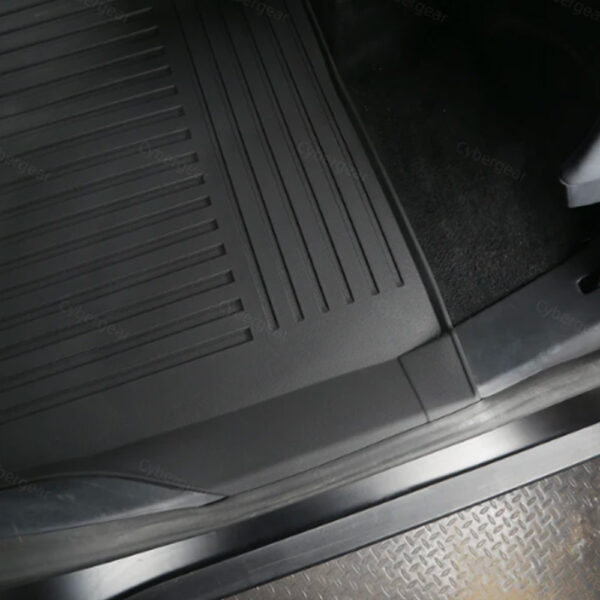 Protect your Cybertruck’s interior with our 3pc All-Weather Floor Mats. These interior liners are custom-engineered using digital measurements for a flawless fit and maximum coverage. Made from robust, injection-molded thermoplastic elastomer (TPE), they offer superior durability. The design features protective vertical walls that keep spills and dirt off your carpet, guaranteeing easy maintenance and ultimate protection.