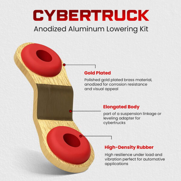Introducing the new CYBERTRUCKco Lowering Rod Kit, the perfect upgrade for Cybertruck owners looking to lower their vehicle’s ride height and aesthetics. This innovative kit replaces the original lift rods, cleverly modifying the suspension system to decrease the air in the shocks, all while traveling within its normal range of motion. As a result, your Cybertruck rides lower in all settings, providing a great look on the road and great for show cars or trucks with larger rims to fill the wheel well.